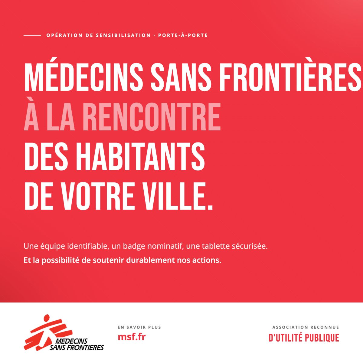 Dans le cadre de ses activités de sensibilisation, une équipe de Médecins Sans Frontières sera présente dans la commune la semaine du 27 avril 2026. Chaque membre sera facilement identifiable